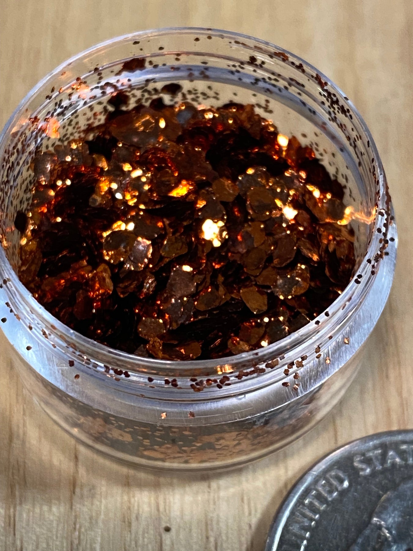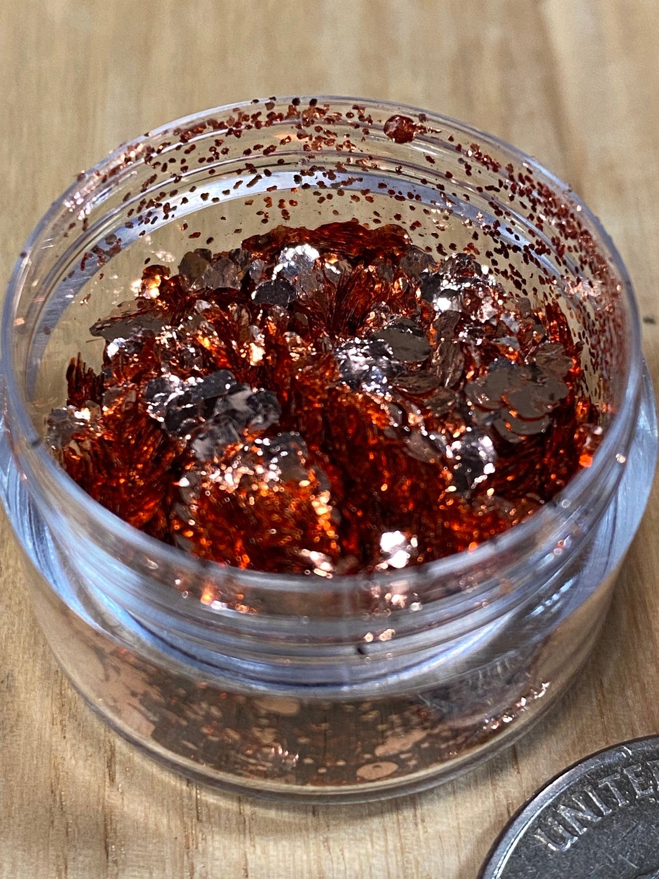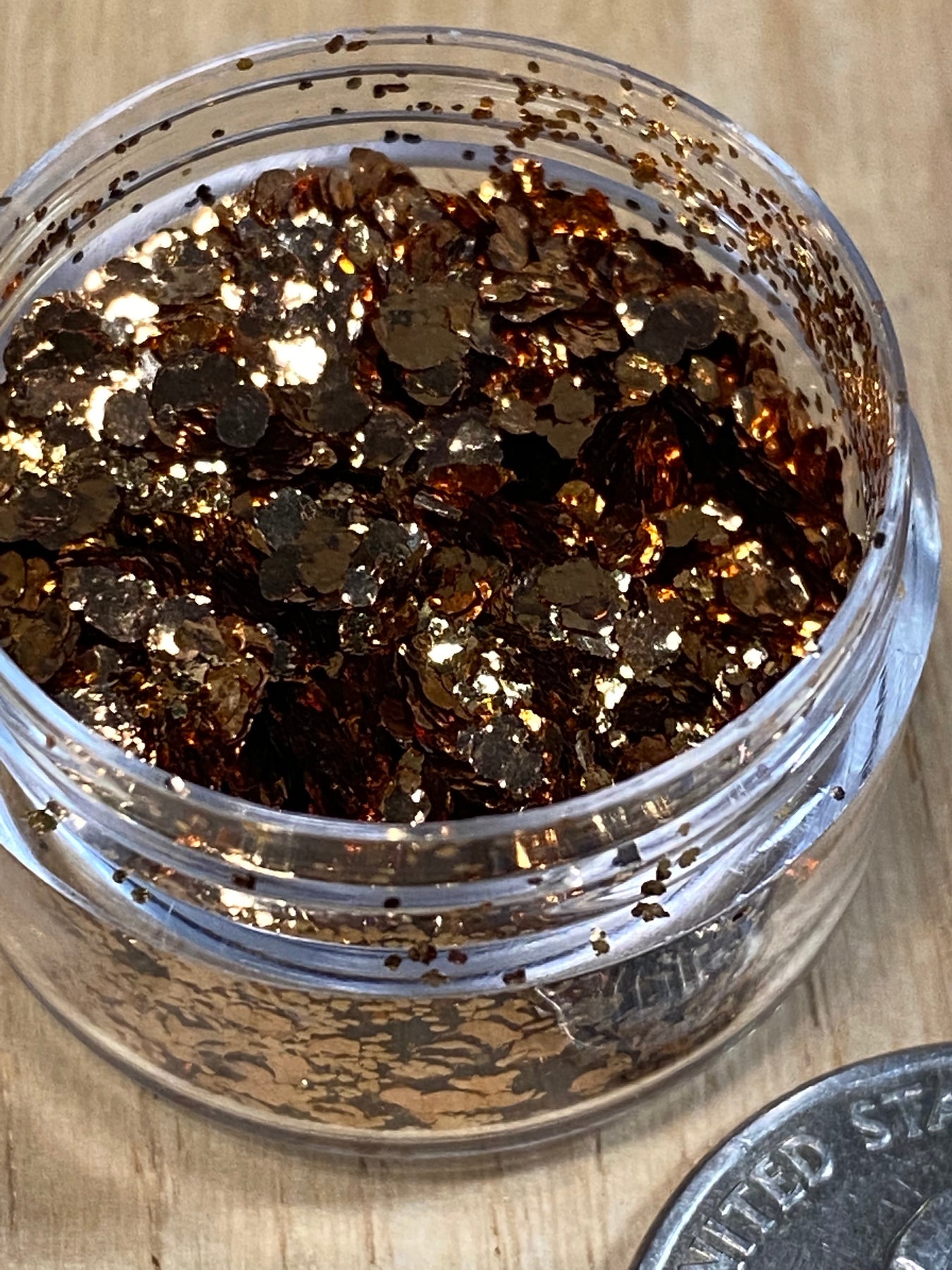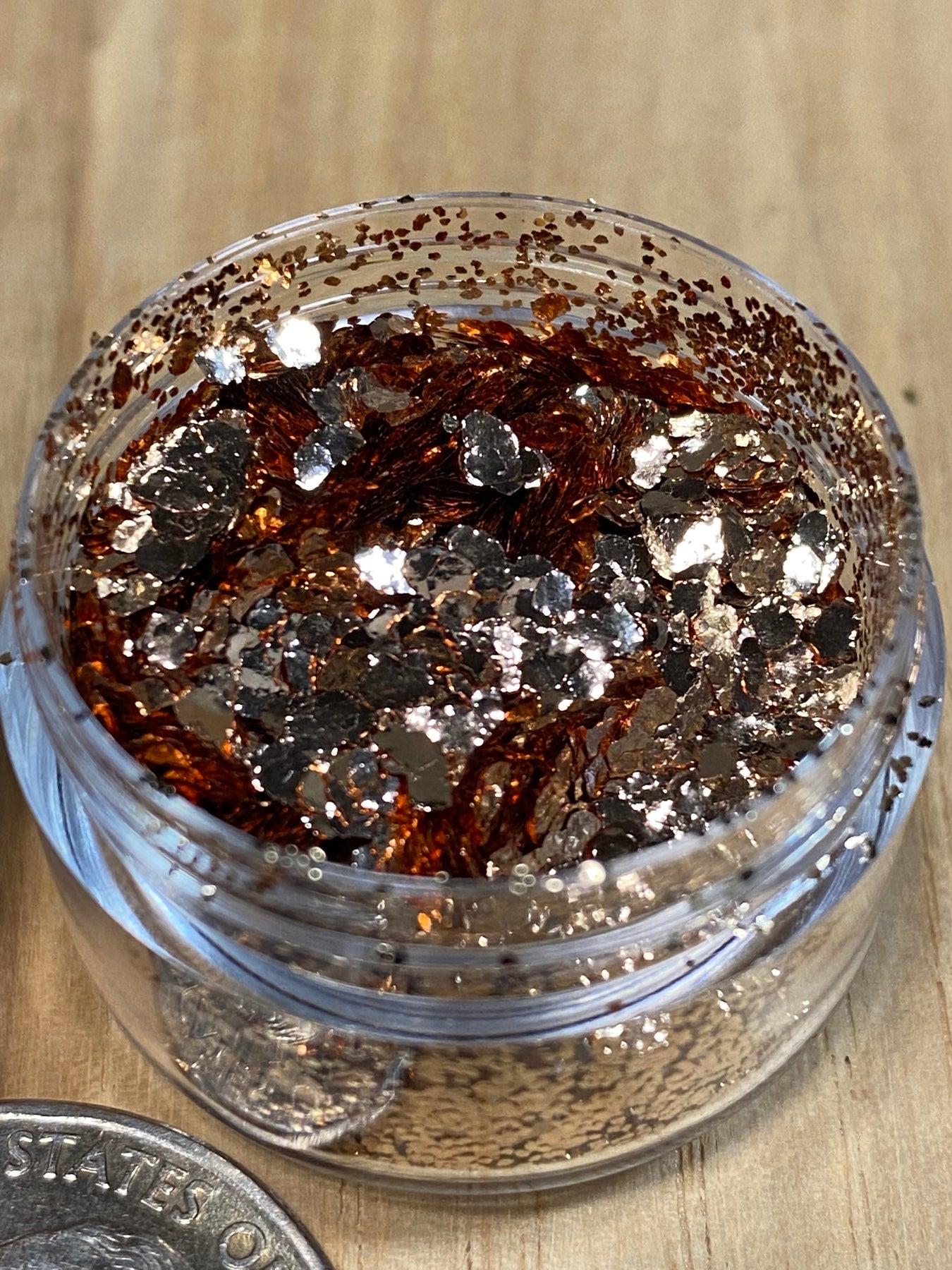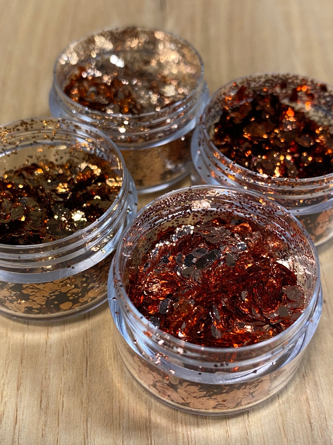 A sample pack of four of our blended metallic flakes. It includes copper, gold bronze, amber copper and brass. These blends are made by mixing our super fine .2mm, .5mm and large 2mm flakes at a ratio to bring out the best qualities of each flake.