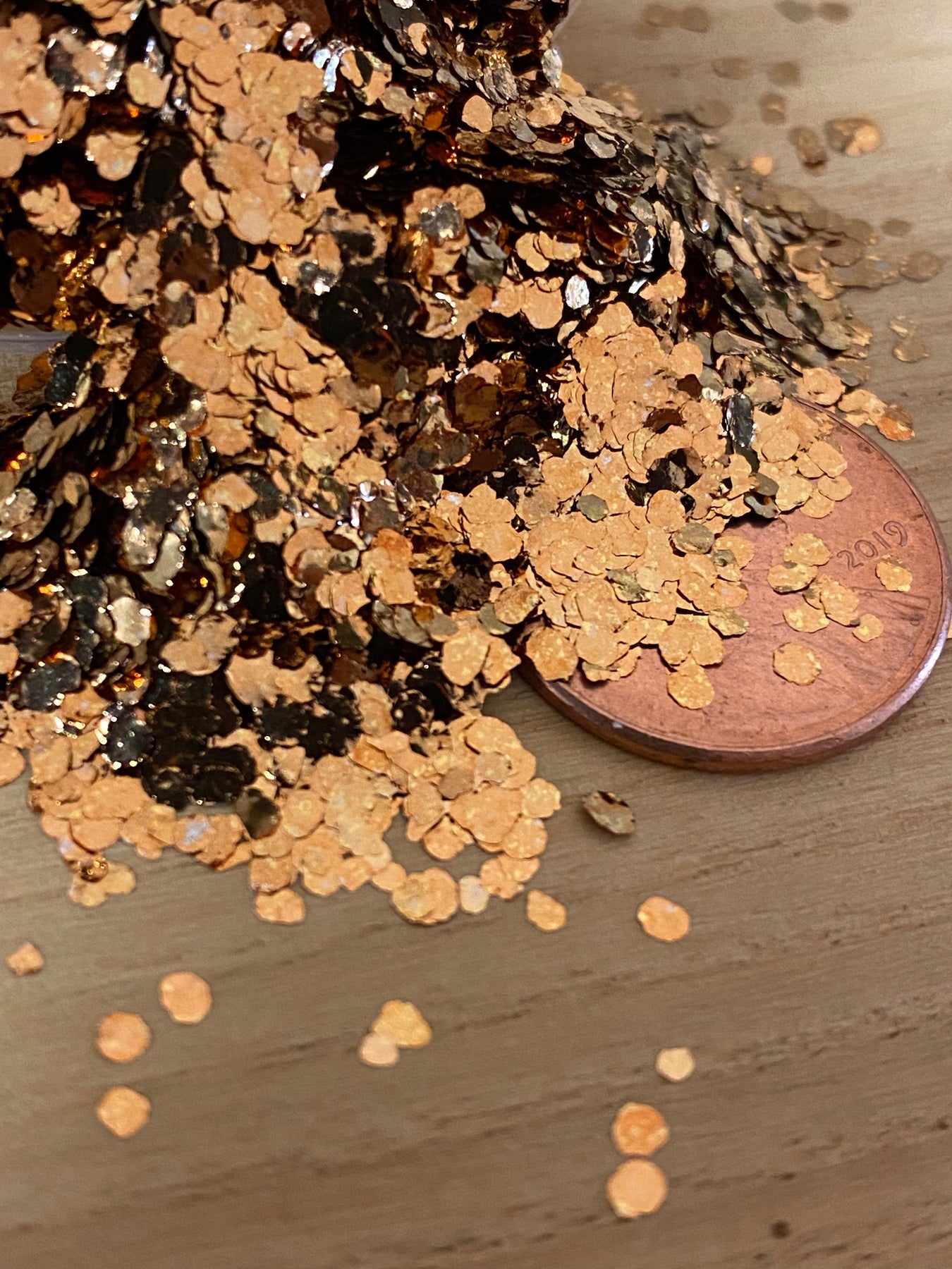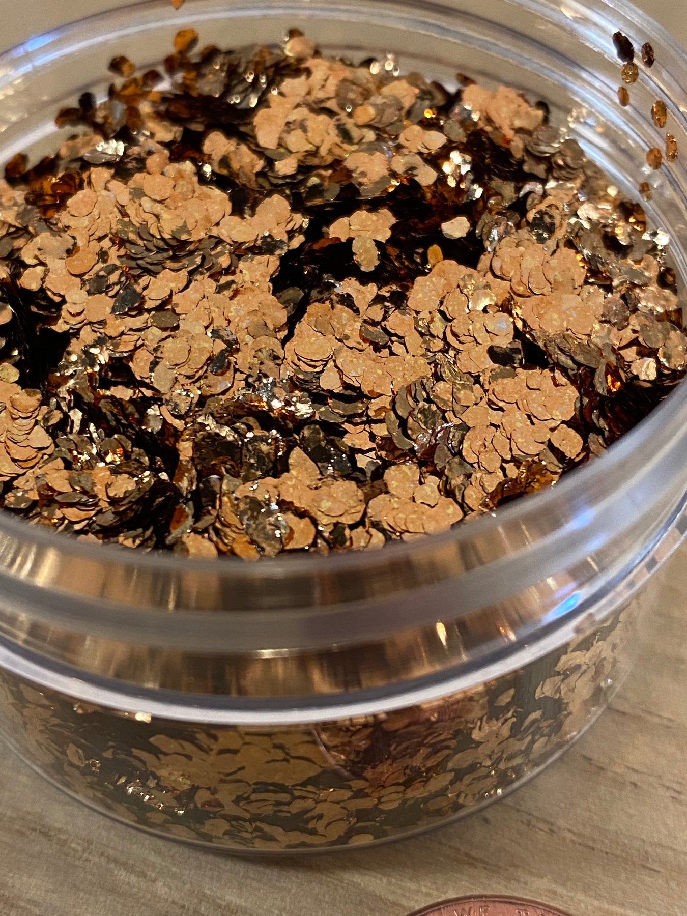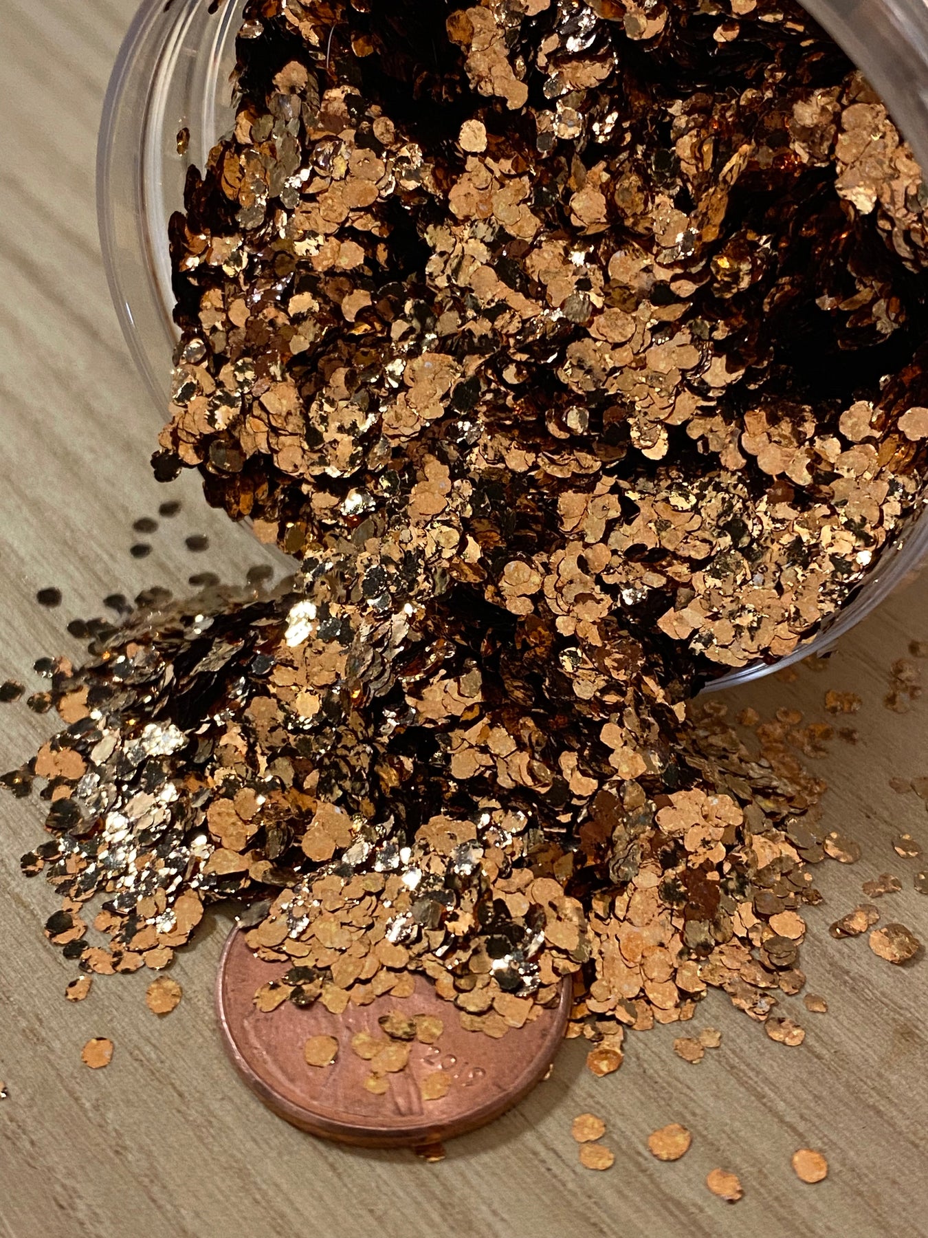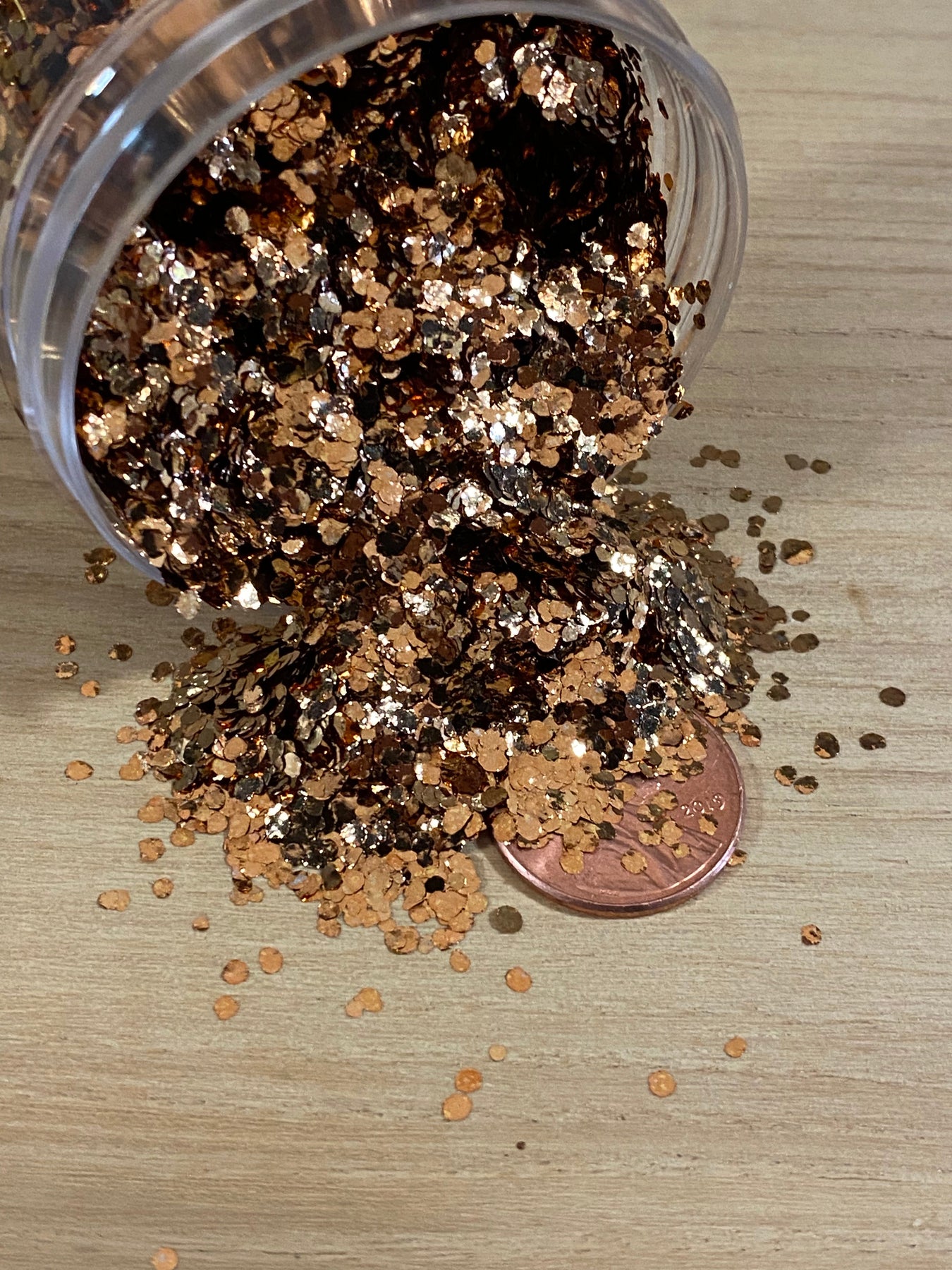 These genuine bronze flakes are 2mm in diameter on average and are a rich shade of gold.