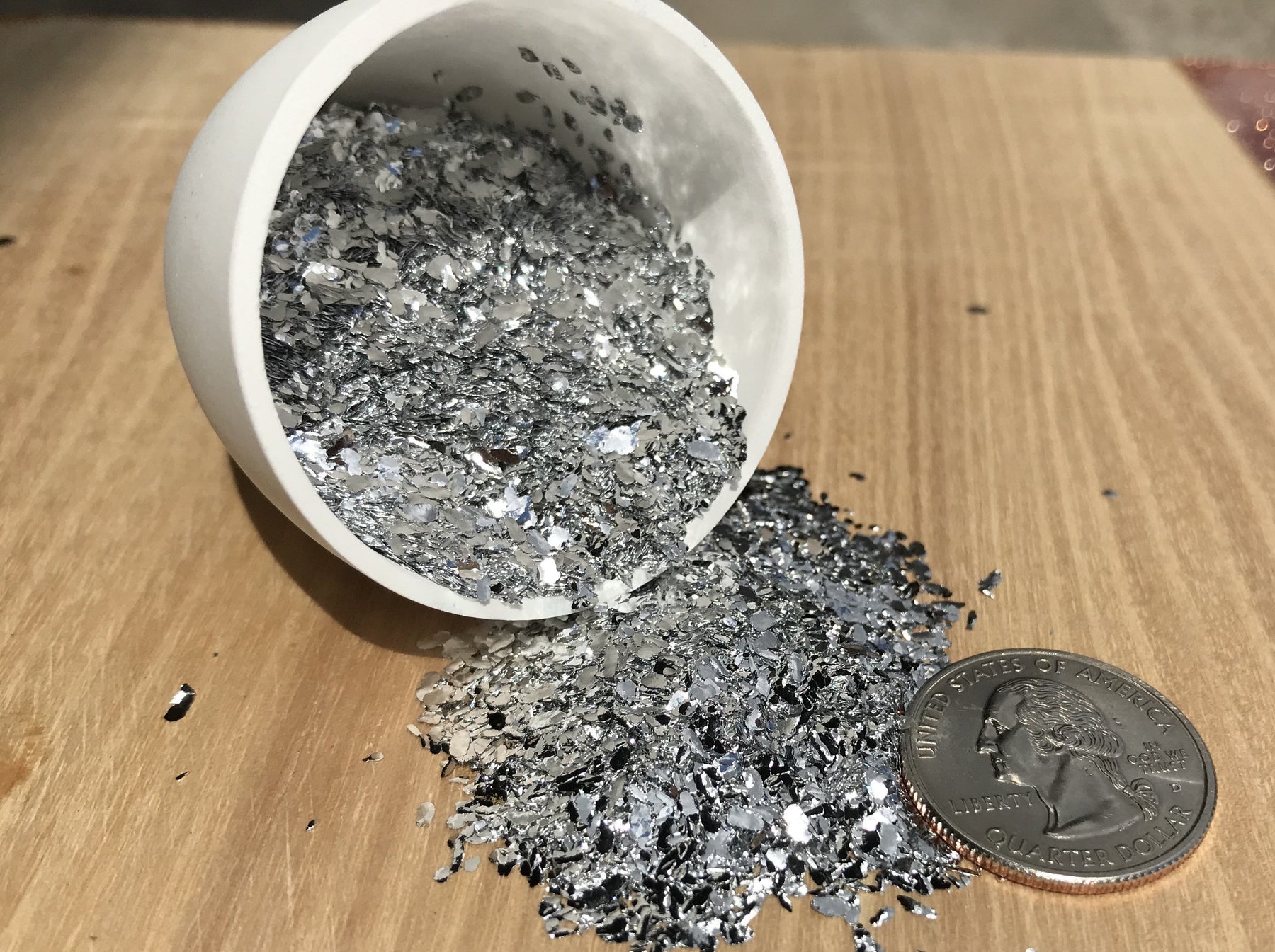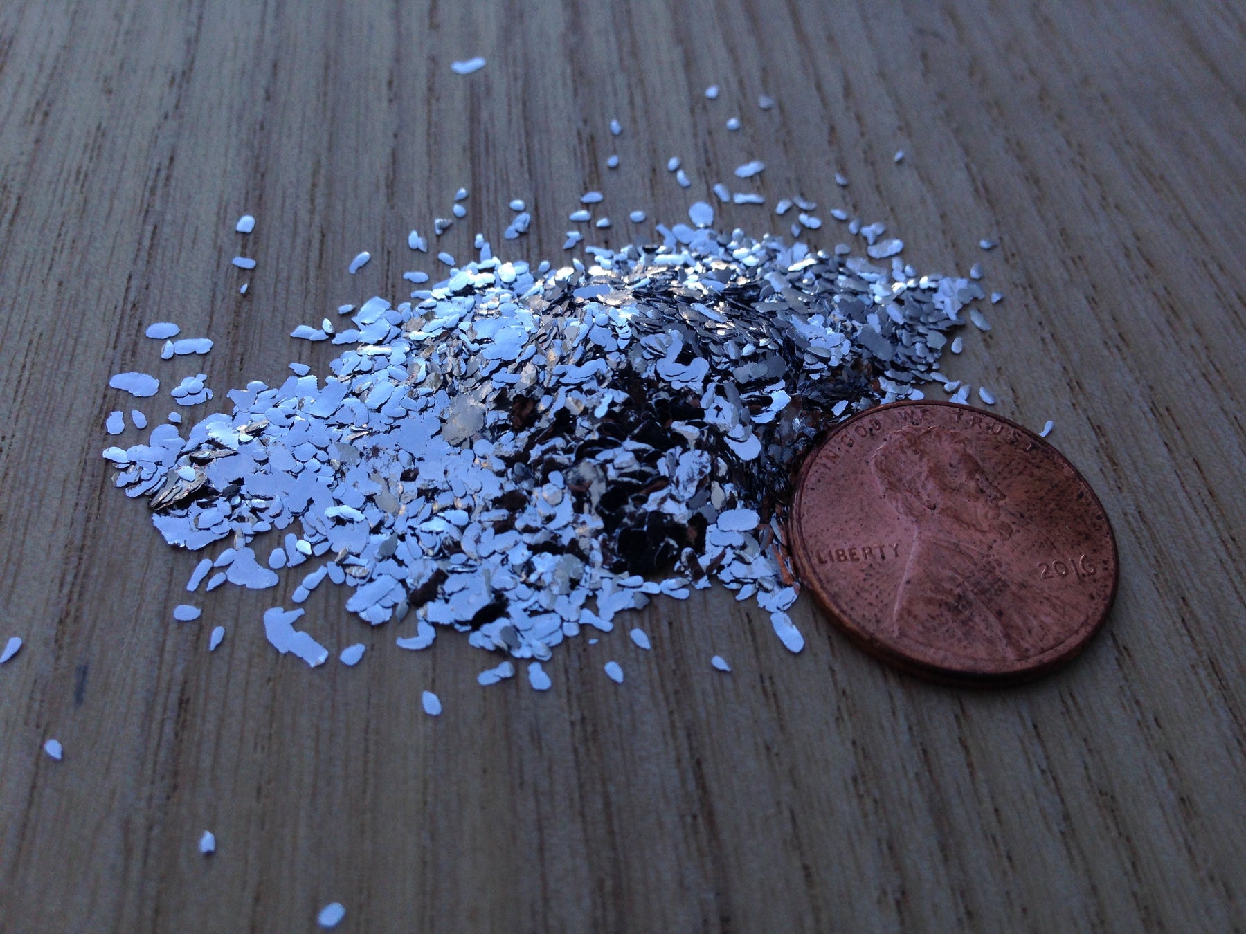 This listing is for 25 grams of genuine aluminum metal flakes. These flakes have a true mirror polish.