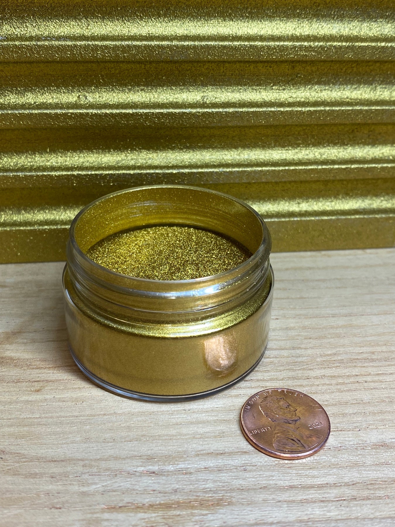 Note: This listing is for the jar of pigment only, paints mediums sold separately. Our gold brass pigments will have a higher sparkle but lower hiding power than our copper pigments. Multiple coats may be required depending on your substrate.